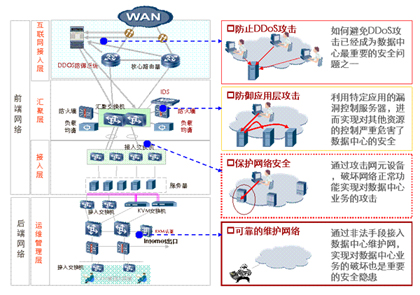 隨著各種黑客工具的推陳出新,數(shù)據(jù)中心面臨的安全威脅越來越大。數(shù)據(jù)中心網(wǎng)絡的安全必須從多個維度進行設計。