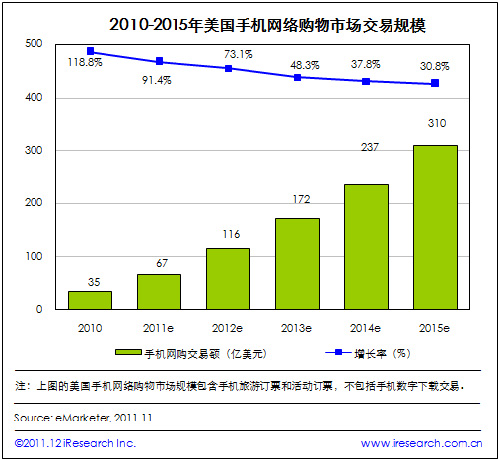 2015年美國手機網(wǎng)購交易規(guī)模將達(dá)到310億美元