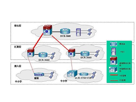 同時,DCR-3660、DCR-2600系列路由器為增強教育城域網(wǎng)VoIP管理,提供內(nèi)置H.323網(wǎng)守功能,可以在區(qū)縣教委提供免費本地網(wǎng)守,減輕市教委網(wǎng)守的壓力。