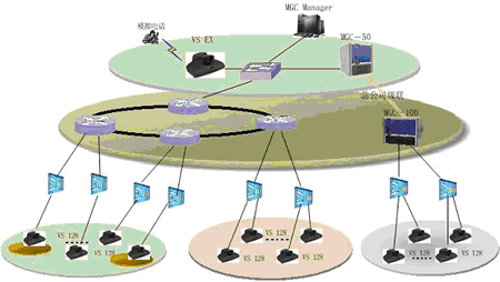 一般來(lái)說(shuō),在省公司同時(shí)參與會(huì)議的人數(shù)較多,考慮配置比較大的系統(tǒng),由某一領(lǐng)導(dǎo)召集一些相關(guān)成員在此開會(huì);在地市公司同時(shí)參與會(huì)議的人數(shù)較少,只是一些主要領(lǐng)導(dǎo)參加會(huì)議,考慮配置比較小的系統(tǒng);同時(shí),為了實(shí)現(xiàn)終端之間管理和傳送音頻、視頻和數(shù)據(jù),需要MCU來(lái)協(xié)調(diào)終端的工作,并與上級(jí)MCU相級(jí)聯(lián),擴(kuò)大會(huì)議的規(guī)模。另外,可以增加一套T.120服務(wù)器,該系統(tǒng)是利用多媒體技術(shù)幫助使用者對(duì)工作中的各種信息進(jìn)行處理,如共享數(shù)據(jù)、共享應(yīng)用程序、實(shí)現(xiàn)文件的雙向傳輸?shù)龋瑥亩鴺?gòu)造出一個(gè)多人共享的工作空間。以及增加一套VOD系統(tǒng),它集視頻采集、點(diǎn)播、廣播于一體,這樣就可以將視頻會(huì)議的內(nèi)容實(shí)時(shí)的錄制到本地,也可將一些培訓(xùn)資料放在視頻點(diǎn)播里,便于對(duì)貴公司員工進(jìn)行培訓(xùn),還能通過(guò)視頻廣播的功能,讓使用PC機(jī)的人員不在會(huì)議室,便可以通過(guò)瀏覽器實(shí)時(shí)的看到和聽(tīng)到正在召開的會(huì)議。
