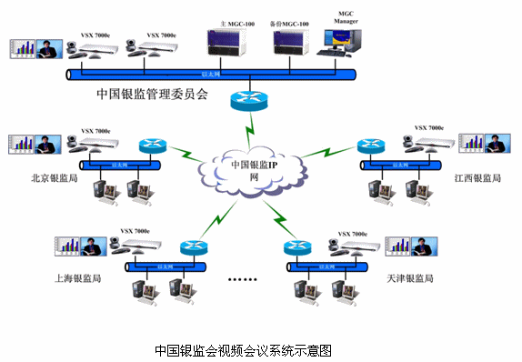 中國銀監(jiān)會(huì)目前已經(jīng)擁有一個(gè)高速、高可靠性的ATM骨干傳輸網(wǎng)絡(luò),網(wǎng)絡(luò)采用星形結(jié)構(gòu),各分支機(jī)構(gòu)到北京總部的線路均為2條15M ATM線路,這種優(yōu)良的網(wǎng)絡(luò)非常適合視頻會(huì)議業(yè)務(wù)的運(yùn)營。視頻會(huì)議網(wǎng)建立完成后可以實(shí)現(xiàn)通過遠(yuǎn)程視頻會(huì)議,遠(yuǎn)程處理重點(diǎn)銀行業(yè)金融機(jī)構(gòu)監(jiān)事會(huì)的日常管理工作;遠(yuǎn)程審查銀行業(yè)金融機(jī)構(gòu)高級管理人員任職資格;遠(yuǎn)程討論協(xié)商制定有關(guān)銀行業(yè)金融機(jī)構(gòu)監(jiān)管的規(guī)章制度和辦法;遠(yuǎn)程對銀行業(yè)金融機(jī)構(gòu)實(shí)監(jiān)管,依法對違法違規(guī)行為進(jìn)行查處;更加可以通過遠(yuǎn)程雙流會(huì)議,按照國家有關(guān)規(guī)定,遠(yuǎn)程公布全國銀行數(shù)據(jù)、報(bào)表。