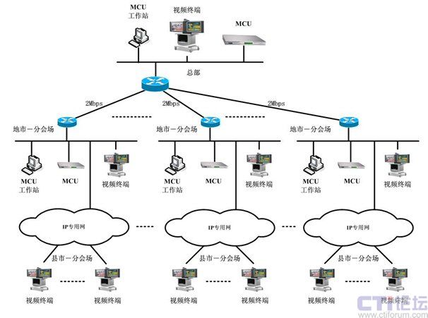多點控制器:在上海總部采用POLYCOM公司DST MCS4200系列多點控制單元,在下面各分公司根據(jù)各自下屬中支機構(gòu)數(shù)量的不同分別配置總計17臺MCS4200系列MCU,組成一個分層級聯(lián)的全國性視頻會議網(wǎng)絡(luò)。