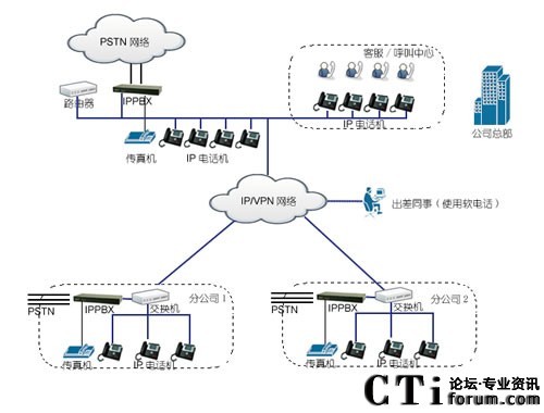 2、采用分布式IPPBX,即使IP網(wǎng)絡(luò)斷開也不影響各分支機(jī)構(gòu)的語音通信。