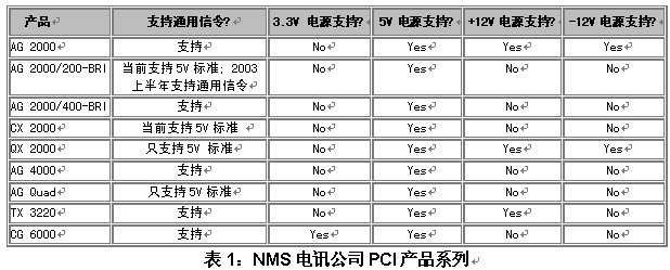 當(dāng)前PCI局域總線技術(shù)標準允許主板同時提供5V和3V輸出。輸出技術(shù)標準與板卡使用的信令標準無關(guān)。一部分NMS板卡同時需要兩種輸入,而另外一部分板卡只需要5V輸入。