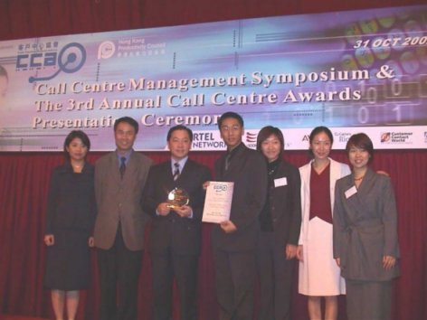 香港 2002年10月31日-在全球呼叫中心業(yè)享有盛譽(yù)的香港客戶中心協(xié)會(huì)日前宣布了2002年度各獎(jiǎng)項(xiàng)獲獎(jiǎng)名單。在今天下午舉行的第三屆年度呼叫中心頒獎(jiǎng)典禮上,飛翱網(wǎng)訊成為年度最佳呼叫中心獎(jiǎng)得主之一。這是繼去年以來,飛翱網(wǎng)訊連續(xù)第二年獲此殊榮。與此同時(shí),來自于飛翱網(wǎng)訊香港公司的業(yè)務(wù)主管,Gray Ho先生被授予了呼叫中心團(tuán)隊(duì)領(lǐng)導(dǎo)人優(yōu)勝獎(jiǎng)。經(jīng)過專家評(píng)審團(tuán)的層層篩選,飛翱網(wǎng)訊在各個(gè)考核指針上均有不俗的表現(xiàn),并最終從其它數(shù)十家香港呼叫中心運(yùn)營(yíng)商中脫穎而出。