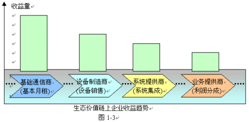 不管何種企業(yè), 各個企業(yè)都共同培育生態(tài)價值鏈, 準確定位企業(yè)自己在生態(tài)鏈上的位置, 共分市場. 共享利潤. 圖1-3