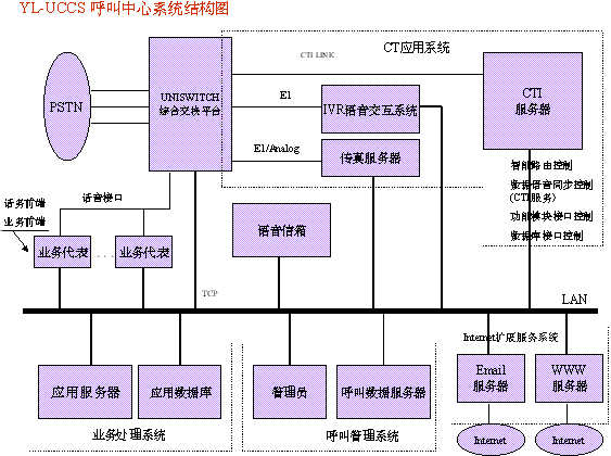 YL-UCCS呼叫中心充分利用了現(xiàn)有電信及網(wǎng)絡(luò)資源,提供多種智能服務(wù)的綜合呼叫中心框架,保證開放、統(tǒng)一的接口,以充分適應(yīng)擴展各項新業(yè)務(wù)的需求。