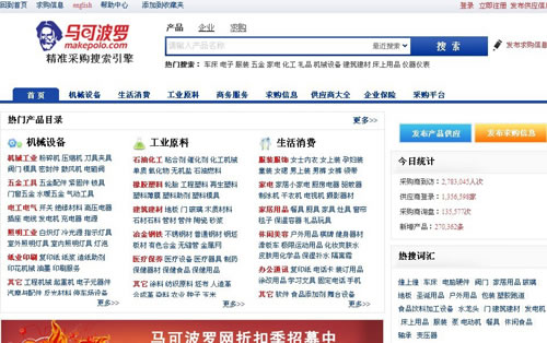 馬可波羅網(wǎng)隸屬北京搜斗士信息技術(shù)有限公司,成立于2006年,是全球最大的精確采購搜索引擎。馬可波羅按照格式化標(biāo)準(zhǔn)研發(fā)的多維精準(zhǔn)搜索系統(tǒng),首創(chuàng)電子商務(wù)精確廣告營銷模式(B2B競價(jià)排名),僅用了不到5年時(shí)間,即在B2B電子商務(wù)精準(zhǔn)采購搜索領(lǐng)域做到行業(yè)第一。