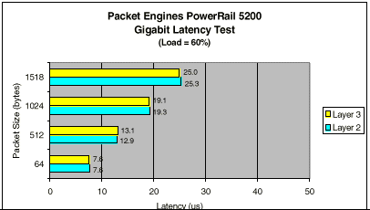 參看以下第三方評測機(jī)構(gòu)Strategic Networks(http://www.snci.com)測試OmniCore5000交換機(jī)得到的L2(橋接)和L3(路由)的時(shí)延,64byte數(shù)據(jù)包的時(shí)延只有7.6微秒。