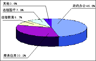 其中,視頻會議業(yè)務(wù)是目前階段視頻通信發(fā)展的重點(diǎn),其主流是基于IP協(xié)議的視頻會議技術(shù)。目前的市場特點(diǎn)是硬件視頻會議已經(jīng)被接受,軟件視頻會議正在成長。但是競爭格局分散,仍然處于“戰(zhàn)國時代”,還沒有一家公司處于絕對的統(tǒng)治地位。當(dāng)前視頻會議的主要應(yīng)用場所分布如圖1。