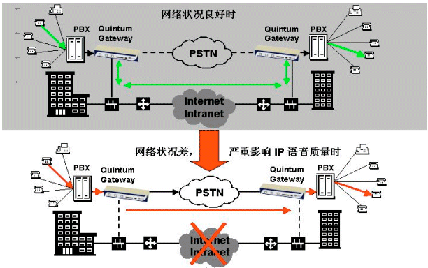 。。Quintum TASQTM專利技術(shù)可動態(tài)監(jiān)控網(wǎng)絡流量狀況,在任何時刻當網(wǎng)絡頻寬低于企業(yè)預設門限值,以致于無法負荷企業(yè)所要求的語音品質(zhì)時,語音回路將自動切換到傳統(tǒng)