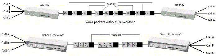 saverTM會將同一時間通話中將同一個目的地的所有語音IP包的包頭部分共享,這樣可以節(jié)省許多頻寬,并加快設備運作的速度。經(jīng)過實驗證明:只需三方電話就可改善40%的頻寬使用效率。此特色讓Quintum