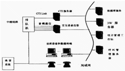 基于計算機(jī)語音板卡的方式(板卡方案,微機(jī)方案):這種方式的基本思想是,在微機(jī)平臺上集成各種專用的計算機(jī)語音板卡(如:呼叫處理卡、語音資源卡、服務(wù)坐席卡),完成通信接口、語音處理、傳真處理、座席轉(zhuǎn)接等功能,再結(jié)合外部的計算機(jī)網(wǎng)絡(luò)來實現(xiàn)應(yīng)用系統(tǒng)的需求。板卡方案的自動呼叫分配功能由軟件ACD實現(xiàn)。