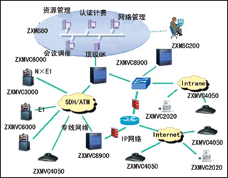 大型行政視訊系統(tǒng):以它為核心骨干,以320系統(tǒng)為延伸,以IP為補充,組建以專線方式為主的寬帶高清視訊系統(tǒng)。采用ZXMVC8900+ZXMVC6000組建網(wǎng)絡主體,在信道有限的地區(qū)采用ZXMVC3000終端,在信道有條件后可平滑升級到ZXMVC