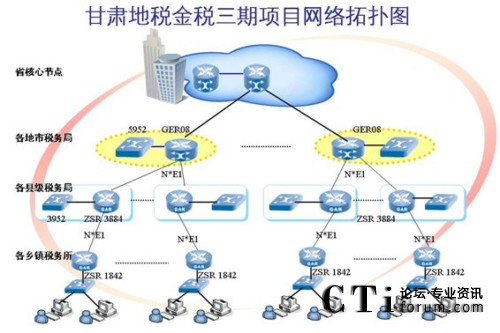 為了實(shí)現(xiàn)這個(gè)目標(biāo),甘肅地稅金稅三期計(jì)劃建立包括甘肅地稅全省網(wǎng)絡(luò)的省、市、縣、所四級(jí)設(shè)備,即省級(jí)核心路由器及交換機(jī)、地市路由器及交換機(jī)、縣級(jí)路由器及交換機(jī)和稅務(wù)所級(jí)路由器及交換機(jī),包含300多臺(tái)高中低端路由器及400多臺(tái)高中低端交換機(jī)設(shè)備。經(jīng)過(guò)綜合評(píng)選和激烈的競(jìng)爭(zhēng),甘肅省地稅金稅三期重點(diǎn)項(xiàng)目花落中興通訊。