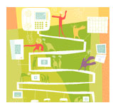 俗話說,多多益善。但是當(dāng)談到多個網(wǎng)絡(luò)的管理或費用承擔(dān)等問題時,恐怕大多數(shù)人都會同意一個網(wǎng)絡(luò)要比兩個或者三個更為經(jīng)濟(jì)有效。這其實是很容易理解的----當(dāng)數(shù)據(jù),語音和視頻能夠利用同一個網(wǎng)絡(luò)進(jìn)行傳輸?shù)脑,還有什么必要在每個桌子拖上一大堆電線,讓公司維護(hù)三五套網(wǎng)絡(luò)硬件,還要養(yǎng)活好幾組技術(shù)支持隊伍呢?更何況一個綜合性的網(wǎng)絡(luò)還能集中精力為每個用戶提供更好的服務(wù)?于是,IP電話應(yīng)運而生,這種技術(shù)讓很多公司有機(jī)會利用現(xiàn)有的網(wǎng)絡(luò)框架贏得更大的利益。