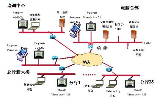 目前,招商銀行開展的一卡通、一網(wǎng)通、網(wǎng)上銀行等業(yè)務(wù)均較大程度上依賴于網(wǎng)絡(luò)系統(tǒng),可以說網(wǎng)絡(luò)的應(yīng)用已遍及招商銀行的各個角落。隨著網(wǎng)絡(luò)帶寬的不斷提升和新興網(wǎng)絡(luò)應(yīng)用的不斷出現(xiàn),招商銀行勢必引入能提高辦公和業(yè)務(wù)效率的新型應(yīng)用。通過IP網(wǎng)絡(luò)召開電視會議將是其中的應(yīng)用之一,也是本項目的啟動背景。