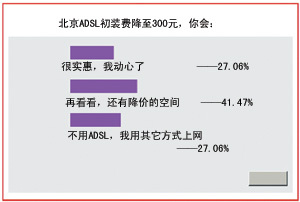 2002年12月,中國(guó)網(wǎng)通北京通信公司發(fā)起了一次降價(jià)活動(dòng),先是將原定今年12月20日到期的512k ADSL上網(wǎng)費(fèi)的半價(jià)優(yōu)惠向后延續(xù)半年期限,緊接著,ADSL初裝費(fèi)從最初的1300元降至300元,降幅達(dá)千元,動(dòng)作之大、降幅之高,令業(yè)界嘩然。不難發(fā)現(xiàn),DSL不僅要延續(xù)原有的市場(chǎng)分額,還要搶占Cable Modem與以太網(wǎng)的半壁江山