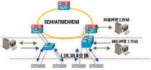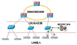 分布式寬帶網(wǎng)管在局端機房放置集中網(wǎng)管監(jiān)控系統(tǒng),在各園區(qū)節(jié)點放置集中網(wǎng)管系統(tǒng),局端網(wǎng)管系統(tǒng)通過園區(qū)網(wǎng)管系統(tǒng)對接入網(wǎng)設(shè)備進行管理與監(jiān)控,局端網(wǎng)管系統(tǒng)在對設(shè)備管理的同時側(cè)重對業(yè)務(wù)的管理,園區(qū)網(wǎng)管系統(tǒng)則側(cè)重對接入設(shè)備的管理。此方案的缺點是結(jié)構(gòu)較復(fù)雜,投資成本較高。