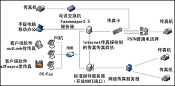 有些人認(rèn)為,傳真服務(wù)器只適合于適中的傳真量,在大型運(yùn)用傳真的情況下,還是傳統(tǒng)的傳真可靠。其實,這樣的想法是不正確的。事實勝于雄辯,目前,包括無錫小天鵝集團(tuán)銷售公司、上海標(biāo)準(zhǔn)件進(jìn)出口公司、中外運(yùn)山東公司等都在使用上海?档膫髡娣⻊(wù)器。這些大型企業(yè)用戶認(rèn)為,傳真服務(wù)器不但能夠經(jīng)得起海量傳真的考驗,而且,解決了傳統(tǒng)傳真機(jī)不方便解決的群發(fā)、傳真?zhèn)浞莸裙δ。FAXmanager目前的版本是Ver2.5,它首先是一個標(biāo)準(zhǔn)的局域網(wǎng)傳真服務(wù)器Fax Server,客戶端提供了一個打印驅(qū)動方式的傳真發(fā)送工具e2faxPro,局域網(wǎng)用戶可以將所有Windows環(huán)境下的文件輕松轉(zhuǎn)換成傳真格式發(fā)送出去,對于接收而言,支持DTMF虛擬傳真分機(jī)識別。Faxmanager2.5傳真管理系統(tǒng)(卡版)原理圖