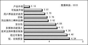 CCID對視頻會議現(xiàn)狀調(diào)查結(jié)果顯示,與以往相比,用戶對視頻會議終端系統(tǒng)的選擇標準已經(jīng)發(fā)生了變化。用戶除了一如既往地要求很好的音視頻質(zhì)量外,對產(chǎn)品的穩(wěn)定可靠性、技術支持和售后服務、多媒體功能、安全性四項也有要求。其中,用戶對視頻會議終端系統(tǒng)的多媒體功能和設備的可拓展升級提出了更高的要求,而不再局限于視音頻質(zhì)量和穩(wěn)定、可靠性上,對多媒體功能的需求在不斷地增長。更多的用戶不僅把會議系統(tǒng)用于視音頻開會,更將視頻會議的多媒體功能作為采購的重要指標之一。