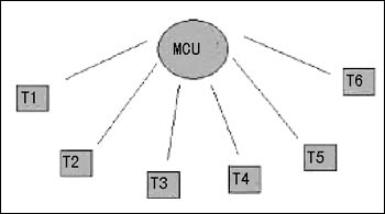 就H.323來講,企業(yè)存在ADSL、電信專線、衛(wèi)星網(wǎng)絡(luò)等多種選擇。H.323基于IP網(wǎng)絡(luò),IP網(wǎng)絡(luò)雖然是總線型的網(wǎng)絡(luò),但從H.323視頻會議系統(tǒng)組網(wǎng)來說,依舊同H.320視頻會議系統(tǒng)一樣,是星型網(wǎng)絡(luò),如圖所示,所有的終端數(shù)據(jù)都匯集到MCU處。這樣對視頻會議系統(tǒng)組網(wǎng)就提出了要求,如果MCU以下共有6個(gè)終端,每個(gè)中端以B的帶寬開會,那么各個(gè)終端處的帶寬要求為B,MCU處的帶寬要求就為6B。