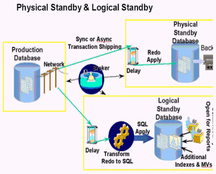 Oracle8i和Oracle9i的第一個版本只支持物理備用數(shù)據(jù)庫,在Oracle9i的第二個版本革命性地引入了邏輯備用數(shù)據(jù)庫。物理備用數(shù)據(jù)庫和邏輯備用數(shù)據(jù)庫的主要區(qū)別在于備用數(shù)據(jù)庫得到日志文件后,如何應(yīng)用日志文件(見圖2)。