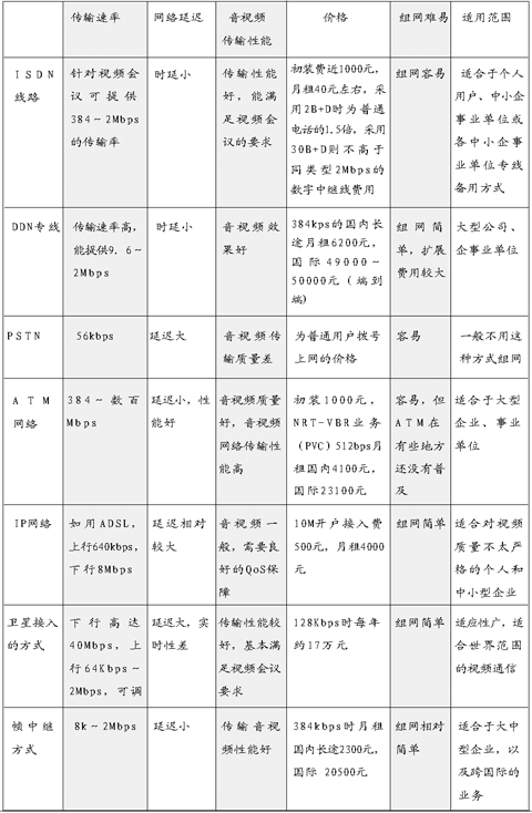 對(duì)于普通的個(gè)人用戶(hù),如果想嘗試一下視頻會(huì)議的感受可以試一試PSTN接入。PSTN公共電話(huà)網(wǎng)是目前使用最廣泛的網(wǎng)絡(luò)系統(tǒng),它的優(yōu)點(diǎn)是覆蓋區(qū)域廣、易于使用、價(jià)格較低,聯(lián)網(wǎng)容易。但網(wǎng)絡(luò)速度僅能提供到56kbps,線(xiàn)路質(zhì)量較差,傳輸速率較低。對(duì)于視頻會(huì)議的聲音圖像傳輸遠(yuǎn)遠(yuǎn)不夠,基于軟件的視頻會(huì)議系統(tǒng)能達(dá)到4f/s的圖像傳輸速率,其最大的缺點(diǎn)是圖像質(zhì)量太差,會(huì)大大影響會(huì)議的質(zhì)量,一般用得很少。