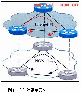 為了滿足NGN業(yè)務(wù)的不同需求,需要將NGN業(yè)務(wù)與Internet業(yè)務(wù)進(jìn)行隔離,這種隔離可以是物理網(wǎng)絡(luò)的隔離,也可以是邏輯網(wǎng)絡(luò)的隔離。