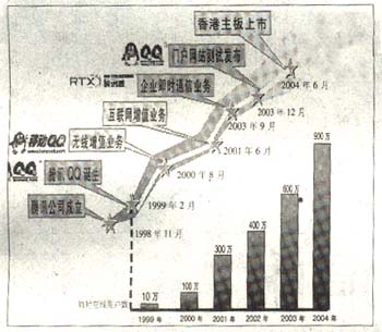 正是憑借著這些優(yōu)勢,即時(shí)通信吸引聚集著一些忠誠用戶,并開始搭建網(wǎng)絡(luò)廣告、無線增值等一系列各種潛在的交易平臺?梢韵胂,一個(gè)絕佳的聊天窗口同時(shí)也是一個(gè)方便的交易窗口和暢通的付費(fèi)入口,即時(shí)通信正在摸索一條前所未有的盈利模式。有專家指出,經(jīng)過近5年的曲折前行,即時(shí)通信的盈利模式將在2005年逐步明確。以騰訊QQ為例,我們來剖析一下即時(shí)通信的盈利模式是如何由模糊走向清晰的。從1999年2月QQ發(fā)布到2000年5月,QQ迅速聚攏了10萬用戶。2000年8月,騰訊公司同廣東移動(dòng)合作,僅僅用了一年就扭虧為盈,實(shí)現(xiàn)了1000萬人民幣的純利潤。