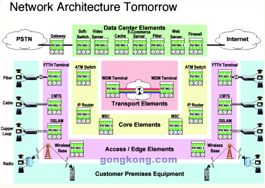 AdvancedTCA在電信網(wǎng)絡架構中的位置如下圖所示: