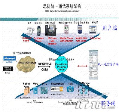2006年IT業(yè)很熱鬧,各路IT英豪不斷為新的利潤增長點提出新的產(chǎn)品及方案,其中有一個新的概念——“統(tǒng)一通信”(Unified Communications)就是其中一例,這也許是將來信息時代的通信革命,特別是商業(yè)辦公通信領(lǐng)域。包括思科、微軟、AVAYA、北電、IBM、JUNIPER都在蠢蠢欲動,而其中的“代表人物”就是思科和微軟兩大分屬網(wǎng)絡(luò)設(shè)備和軟件巨頭,這兩家大公司都不約而同的在6月份吹起這一市場開拓新的號角,并將在2007年推出全線產(chǎn)品,而其它公司據(jù)筆者多方查證,似乎現(xiàn)在還沒有一個完整的可預(yù)期的方案,而思科和微軟的方案已經(jīng)呼之欲出了,也許在不遠的將來這兩家大公司將在統(tǒng)一通信市場上競爭最大的份額。本文將向大家介紹這個即將到來的這個通信革命及代表公司的產(chǎn)品方案。圖1