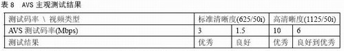 本次測試表明,AVS視頻碼率不到MPEG-2典型碼率二分之一(標清)和三分之一(高清)的情況下,質(zhì)量損失很小,可以達到廣播要求。