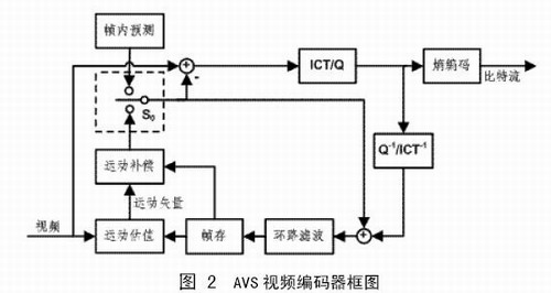 AVS視頻標準定義了I幀、P幀和B幀三種不同類型的圖像,I幀中的宏塊只進行幀內(nèi)預測,P幀和B幀的宏塊則需要進行幀內(nèi)預測或幀間預測,圖中S0是預測模式選擇開關。預測殘差進行8×8整數(shù)變換(ICT)和量化,然后對量化系數(shù)進行zig-zag掃描(隔行編碼塊使用另一種掃描方式),得到一維排列的量化系數(shù),最后對量化系數(shù)進行熵編碼。AVS視頻標準的變換和量化只需要加減法和移位操作,用16位精度即可完成。
