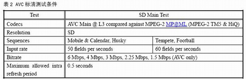 鑒于AVC的編碼效率能夠達到MPEG-2的2倍,我國有關測試機構在測試AVS時,通常把AVS視頻的碼率也設在MPEG-2典型碼率的二分之一或更低,也就是測試AVS編碼效率是MPEG-2的2倍或更高的情況下的AVS視頻的編碼質(zhì)量是否能夠廣播要求。