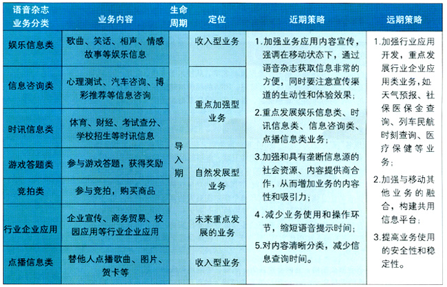 總之,借鑒國際經(jīng)驗(yàn),考慮本國實(shí)情,筆者認(rèn)為,今后國內(nèi)IVR的業(yè)務(wù)結(jié)構(gòu)將會(huì)逐步在發(fā)展中得到改善,雖然說針對個(gè)人提供的語音娛樂類、點(diǎn)播類業(yè)務(wù)在近期仍會(huì)占主體,但信息咨詢類、行業(yè)應(yīng)用類和數(shù)據(jù)類業(yè)務(wù)的比例將會(huì)逐步提高,而形式、內(nèi)容相對空泛的游戲答題類業(yè)務(wù)在經(jīng)過近兩年的繁榮期后,占比和規(guī)模都將會(huì)逐步回落到一個(gè)穩(wěn)定的水平。