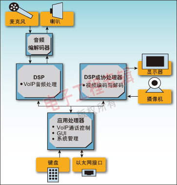 當(dāng)今應(yīng)用處理器的處理能力的增加使得我們能使用先進(jìn)的操作系統(tǒng)環(huán)境,例如嵌入式Linux來有效地將V2IP系統(tǒng)中需要的控制和媒體處理進(jìn)行劃分。這反過來又使得使用單一處理器和工具鏈的軟件開發(fā)更加簡單,由于減少了一個或更多的昂貴DSP而降低了成本。