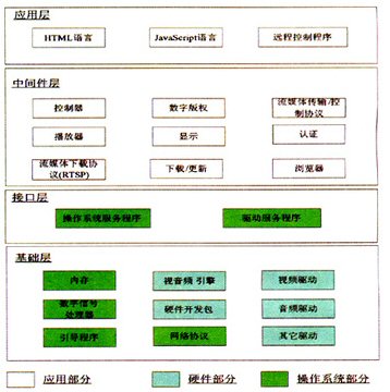盡管如此,目前的主流產(chǎn)品仍然存在一定程度的不足,主要包括:機頂盒成本偏高,制約大規(guī)模業(yè)務(wù)的運營開展;采用私有封閉接口協(xié)議,無法與第三方廠商IPTV系統(tǒng)對接,不能滿足“一盒在手,全網(wǎng)通行”的業(yè)務(wù)需求;USB、游戲桿、無線鍵盤、WLAN、硬盤等外設(shè)接口的支持能力不足;機頂盒管理功能較弱,日志管理和上傳、在線升級版本更新、遠程管理、在線監(jiān)控等方面功能有待進一步提高;難以實現(xiàn)視頻編碼的平滑升級,受限于機頂盒硬件配置,目前基于MPEG4的機頂盒很難平滑升級的支持H.264;業(yè)務(wù)支持能力有待進一步擴展,不能滿足開展視頻通訊和高清、大型網(wǎng)絡(luò)游戲的業(yè)務(wù)需求;業(yè)務(wù)QoS保證機制不完善;系統(tǒng)安全性有待加強,在設(shè)備安全性和內(nèi)容安全性方面考慮不足;不能提供高中低檔產(chǎn)品序列,不能滿足細分用戶的業(yè)務(wù)需求。
