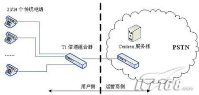相反,在傳統(tǒng)的PBX或新興的IP-PBX中,這些功能模塊通常配置在用戶側(cè)的網(wǎng)絡(luò)元素上,而且通過一條或多條專用線路T1(傳統(tǒng)PBX)或DSL(新興PBX)連接到中心辦公室,用PSTN的連接。圖1說明了PBX和Centrex服務(wù)的區(qū)別。而且,DSL還能在相同的鏈路支持語音和數(shù)據(jù)的傳輸,而且維護(hù)鏈路的成本也遠(yuǎn)遠(yuǎn)小于維護(hù)T1所需的代價。另外,由于呼叫控制能夠在本地裝載,而IP-PBX能夠支持Internet連接,因此每23(T1-PRI)或24(T1-CAS)個電話終端就不再需要一條專用線路T1的支持了。(后續(xù)將進(jìn)一步說明)