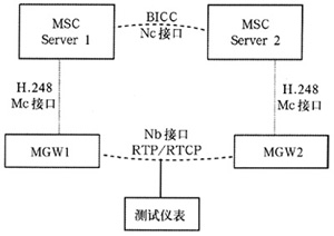 主要是通過測試儀表模擬兩個NGN網(wǎng)絡(luò)的終端用戶,首先通過同NGN網(wǎng)絡(luò)的信令交互建立起這兩個用戶之間的呼叫連接,然后在該連接上模擬發(fā)送和接收測試語音流,通過對收發(fā)語音信號的比較,來測試出端到端的語音質(zhì)量,并且能提供PESQ值和時延值,圖3為主動式語音質(zhì)量測試的結(jié)構(gòu)圖。