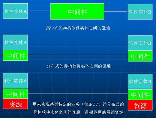 位于IPTV設備底層系統(tǒng)資源(包括硬件、操作系統(tǒng)和網絡資源)和應用程序之間的獨立的系統(tǒng)軟件或通用服務程序;