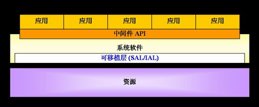 從應用的角度來看,中間件API位于應用層和系統(tǒng)軟件層之間,由系統(tǒng)軟件層提供一套獨立的API給應用層調用。