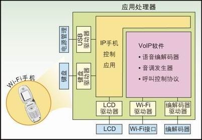 在這些設(shè)計中,一般的人機(jī)界面(MMI)以及VoIP通話控制功能使用傳統(tǒng)的應(yīng)用處理器(ARM、MIPS等),而DSP則用于語音到數(shù)據(jù)包到語音的轉(zhuǎn)換。此方法在便攜設(shè)備的設(shè)計中暴露出很多缺點(diǎn)。