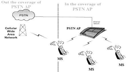 室外環(huán)境下,即脫離藍(lán)牙網(wǎng)絡(luò)覆蓋范圍,CTP MS可以通過(guò)蜂窩網(wǎng)絡(luò)接打電話(huà)。當(dāng)CTP MS從室外進(jìn)入到藍(lán)牙網(wǎng)絡(luò)覆蓋區(qū),不需要人工干預(yù),MS可以自動(dòng)通過(guò)AP進(jìn)行注冊(cè),并將蜂窩網(wǎng)絡(luò)的電話(huà)轉(zhuǎn)移到藍(lán)牙語(yǔ)音網(wǎng)關(guān)所連接的線(xiàn)路上,撥打PSTN網(wǎng)絡(luò)電話(huà)。