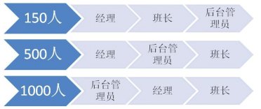 當員工人數(shù)到達500人的時候,班長往往有30位左右。很多經(jīng)理已經(jīng)不能夠?qū)γ课话嚅L有足夠的了解,更不要說去認識大部分員工。這個時候,經(jīng)理對班長的比例過寬,需要強化后臺管理員的角色。比如排班、績效、質(zhì)量管理(而不僅是評估)、信息分析(數(shù)據(jù)和報告)、行政、培訓等工作中,這些管理輔助角色都在逐漸強化。而每一個后臺管理者可能成了經(jīng)理的直接下屬,他們起草的流程和制度,來由經(jīng)理決策。某種程度上說,他們比班長的影響力更大,因為班長還是影響著12-20人。有時候后臺管理員也決定了班長的時間精力分配,那是班長最寶貴的資源。那么誰是管理者呢?首先是經(jīng)理,其次是后臺管理員,最后才是班長。