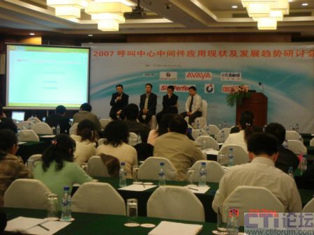 2007年11月29日,由CTI論壇主辦的,2007呼叫中心中間件應(yīng)用現(xiàn)狀及發(fā)展趨勢(shì)研討會(huì)在上海光大會(huì)展中心國(guó)際大酒店隆重召開,會(huì)議期間,來自于當(dāng)前各主流中間件廠商的專家在臺(tái)上回答參會(huì)代表的提問,與代表互動(dòng)交流,并就熱點(diǎn)問題各抒己見,共同探討。