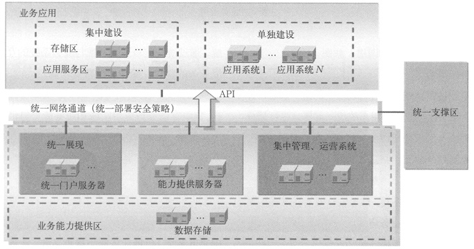 。5)應(yīng)用業(yè)務(wù)區(qū):統(tǒng)一搭建應(yīng)用硬件平臺,實現(xiàn)應(yīng)用業(yè)務(wù)區(qū)業(yè)務(wù)應(yīng)用及業(yè)務(wù)能力提供區(qū)接入通道類型的新增,均可直接在其硬件平臺上加載應(yīng)用軟件、提供服務(wù),調(diào)用現(xiàn)有資源實現(xiàn)。個別因為系統(tǒng)本身需求需要單獨建設(shè)、部署的系統(tǒng)則保留其單獨建設(shè)的方式。
