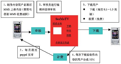 M1新加坡移動(dòng)運(yùn)營商M1推出了用戶制作及共享視頻業(yè)務(wù)——MeTV,用戶可以通過MMS上傳視頻內(nèi)容,其它用戶可以瀏覽并下載。這項(xiàng)業(yè)務(wù)為用戶提供了一個(gè)展示自己和了解他人的平臺。這個(gè)業(yè)務(wù)也建立了與用戶分成的模式,用戶可以從自己上傳的內(nèi)容中獲得利潤。用戶上傳的視頻內(nèi)容,被他人下載一次,用戶就可以獲得0.05新元。自從2007年3月該業(yè)務(wù)推出以來,已經(jīng)有超過4萬名用戶,收入最高的用戶已經(jīng)達(dá)到50~100新元。