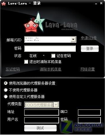 登陸界面除了標(biāo)準的帳號登錄功能以外,Lava-Lava的設(shè)置比百度Hi豐富一些,網(wǎng)絡(luò)設(shè)置使局域網(wǎng)用戶可以方便地進行代理服務(wù)器項目的設(shè)置,還可以選擇“退出時清理本機消息”保護自己的隱私。百度Hi的設(shè)置則是清新簡潔。(圖5、圖6)