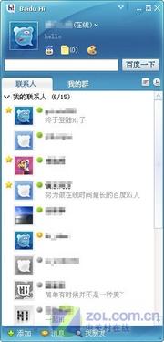 登陸以后進入主界面,百度Hi顯得略微清爽簡單一些,符合百度“簡單可依賴”的風(fēng)格。